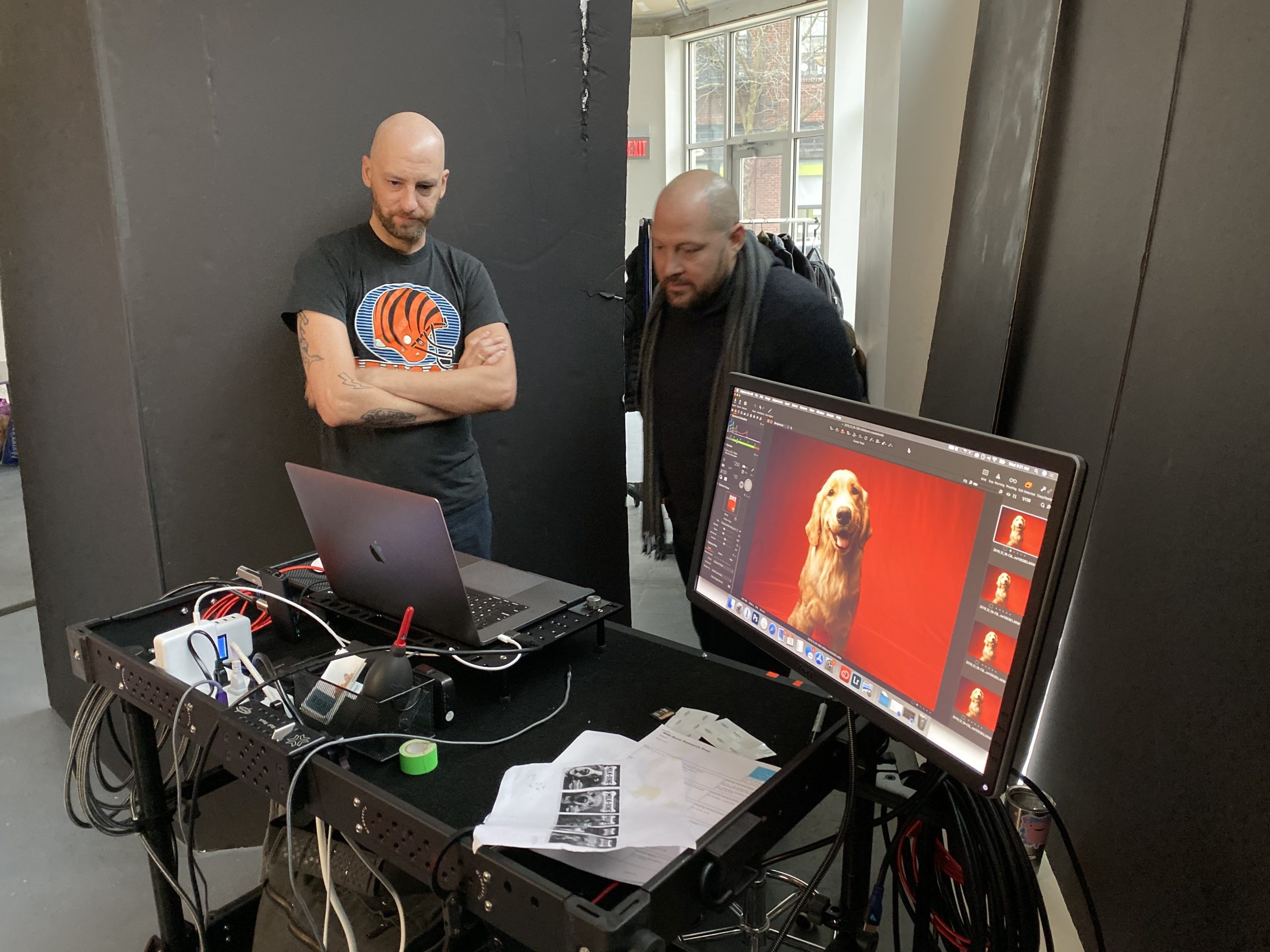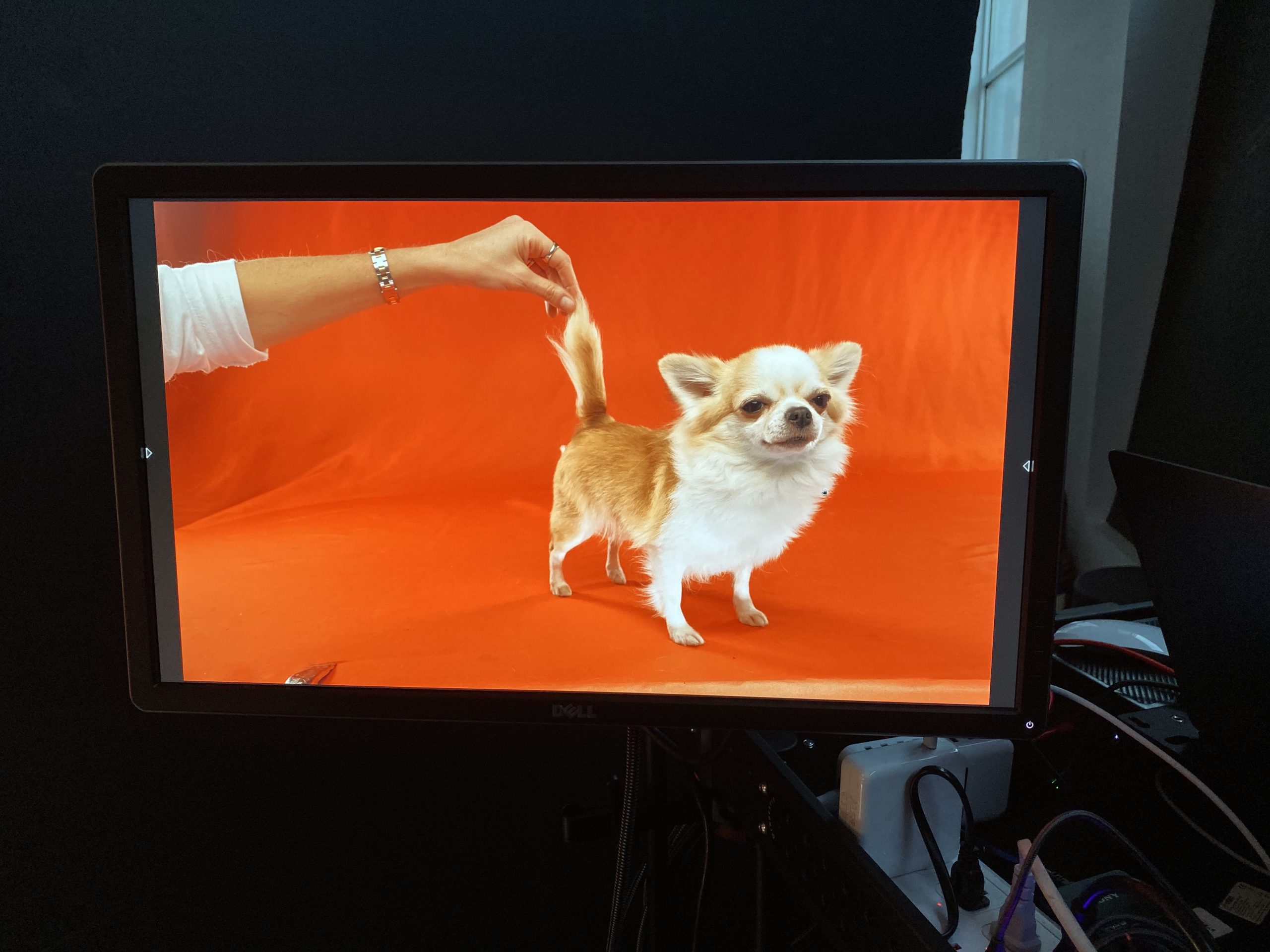 Because the team had to get specific shots, they had to have a few tricks up their sleeve. For most dogs, food is the best motivator, and changing the food throughout the shoot keeps the dogs interested. Dog and cat toys are also helpful to get the dogs to focus on the camera and perk up. Brendan says, “You’d be surprised how well cat toys work when they are dangled above a camera.”